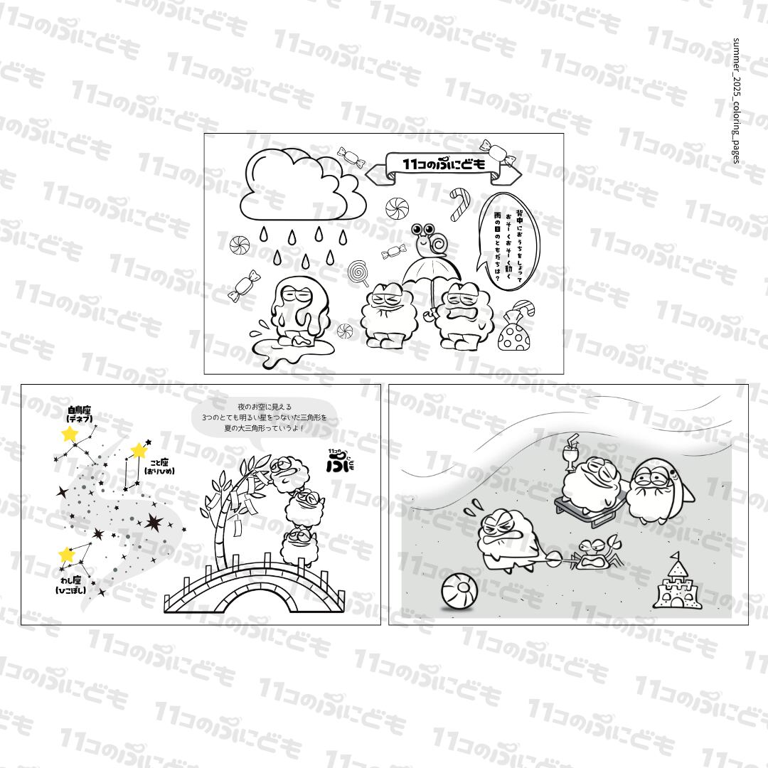 【ぬりえ】夏のぷにども_2025