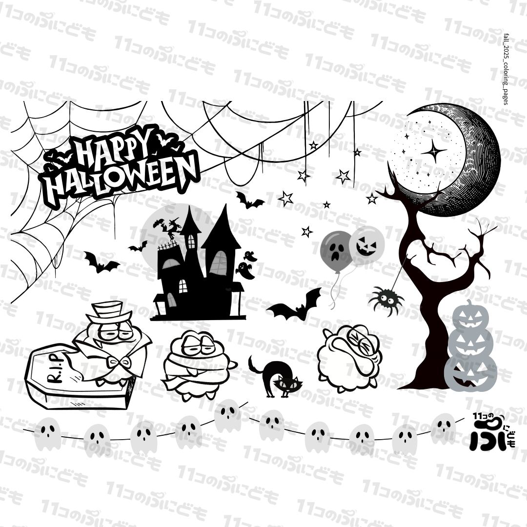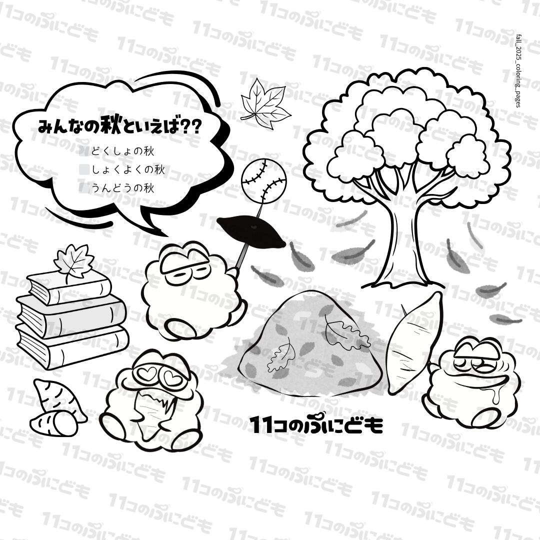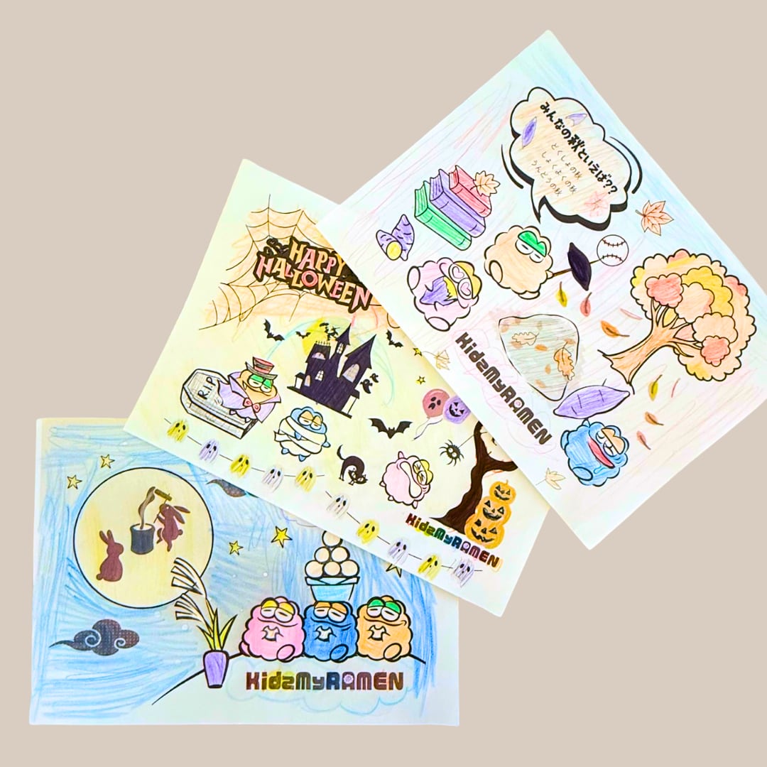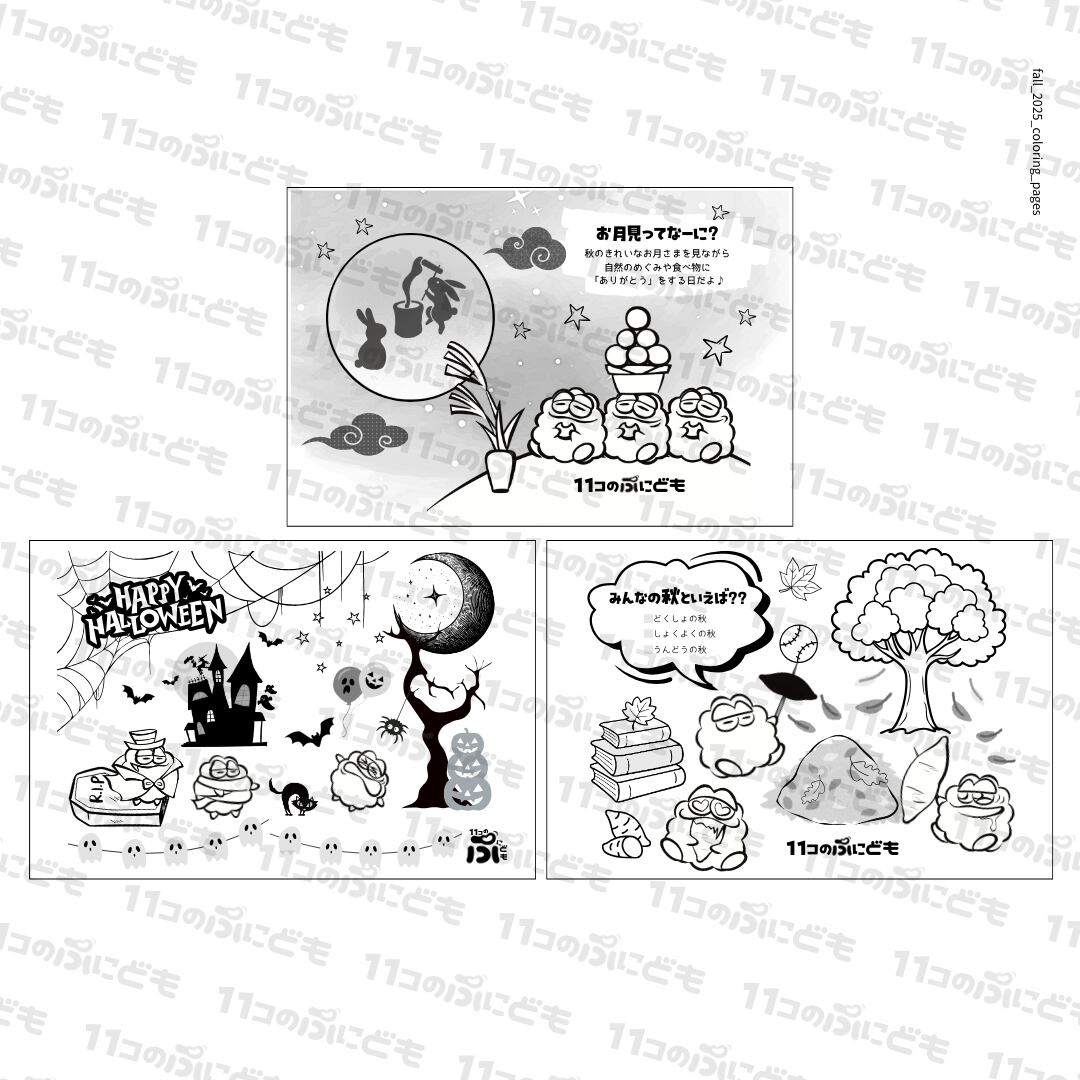 ぷにどもが描かれた全3枚の塗り絵セットが
