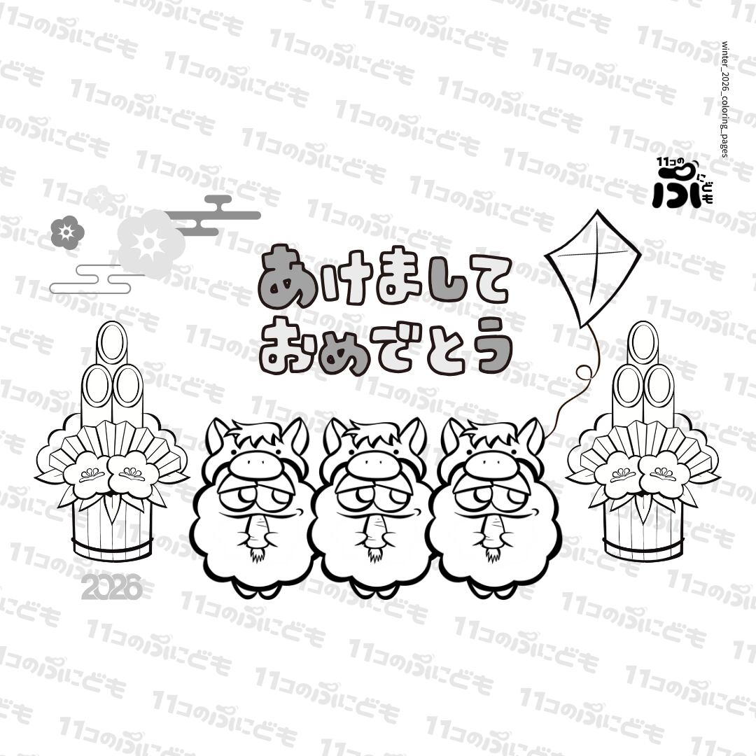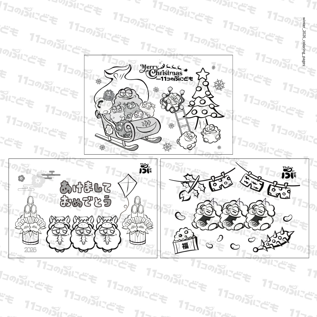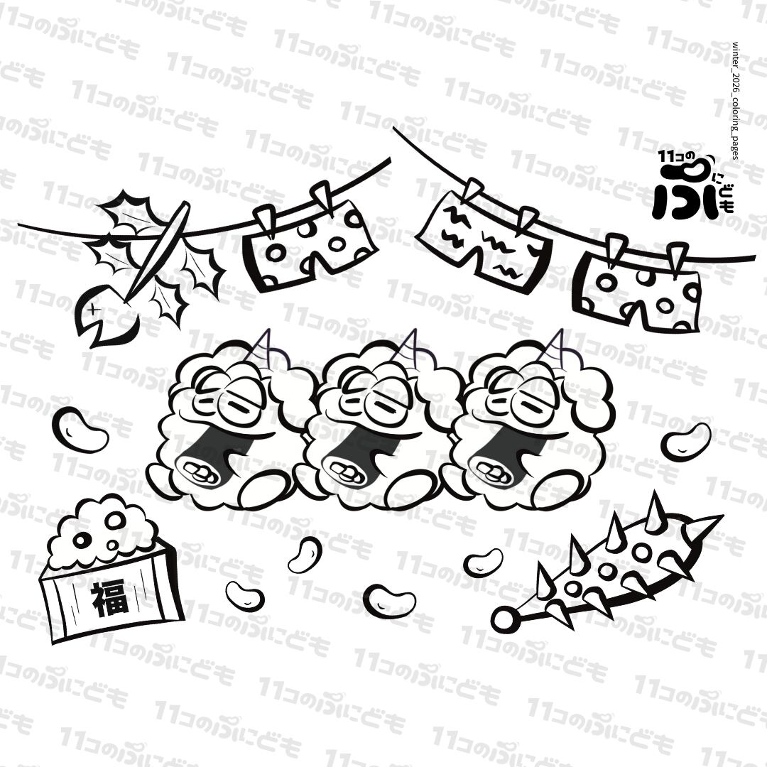 【ぬりえ】冬のぷにども_2026